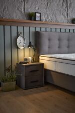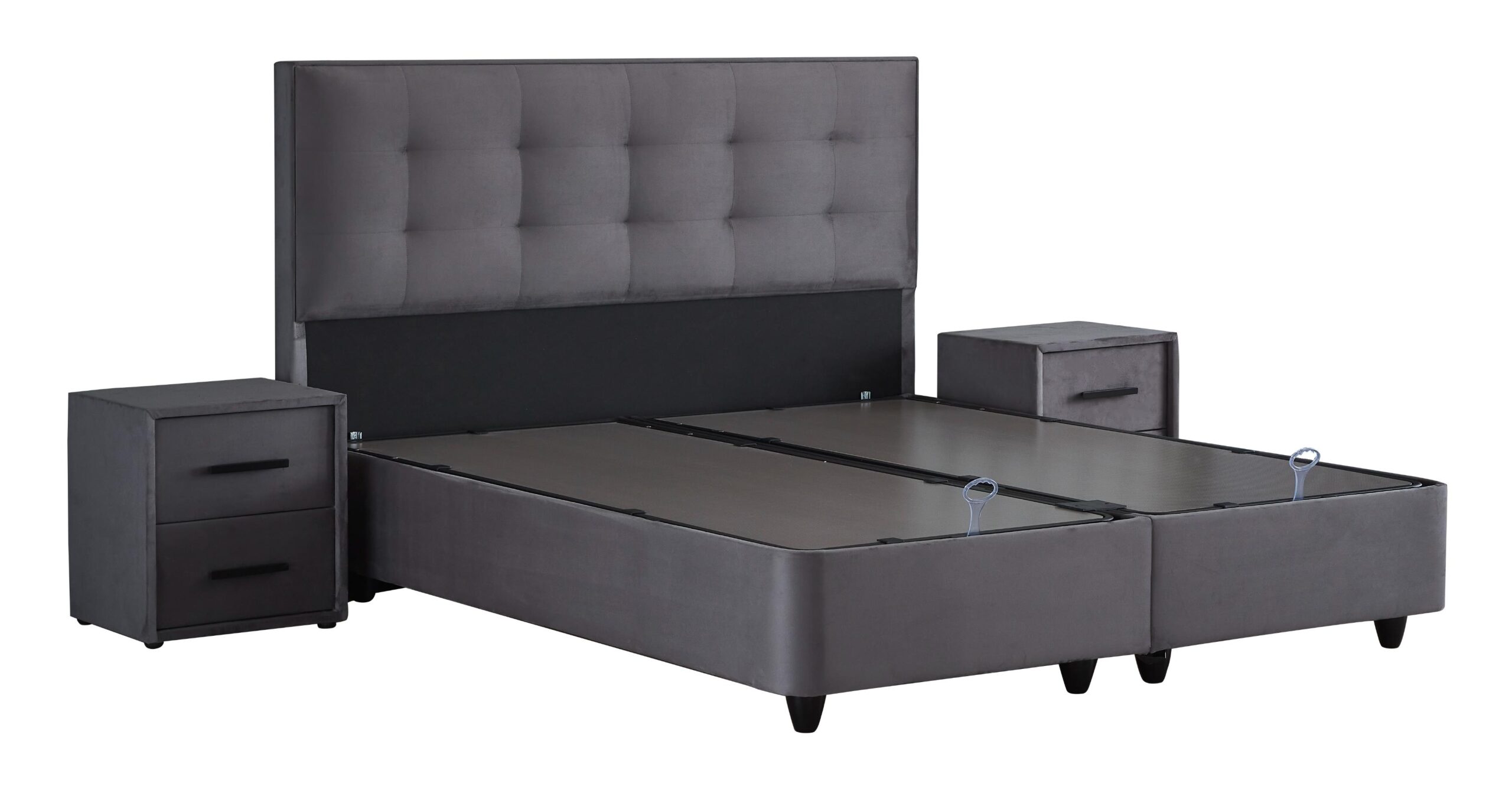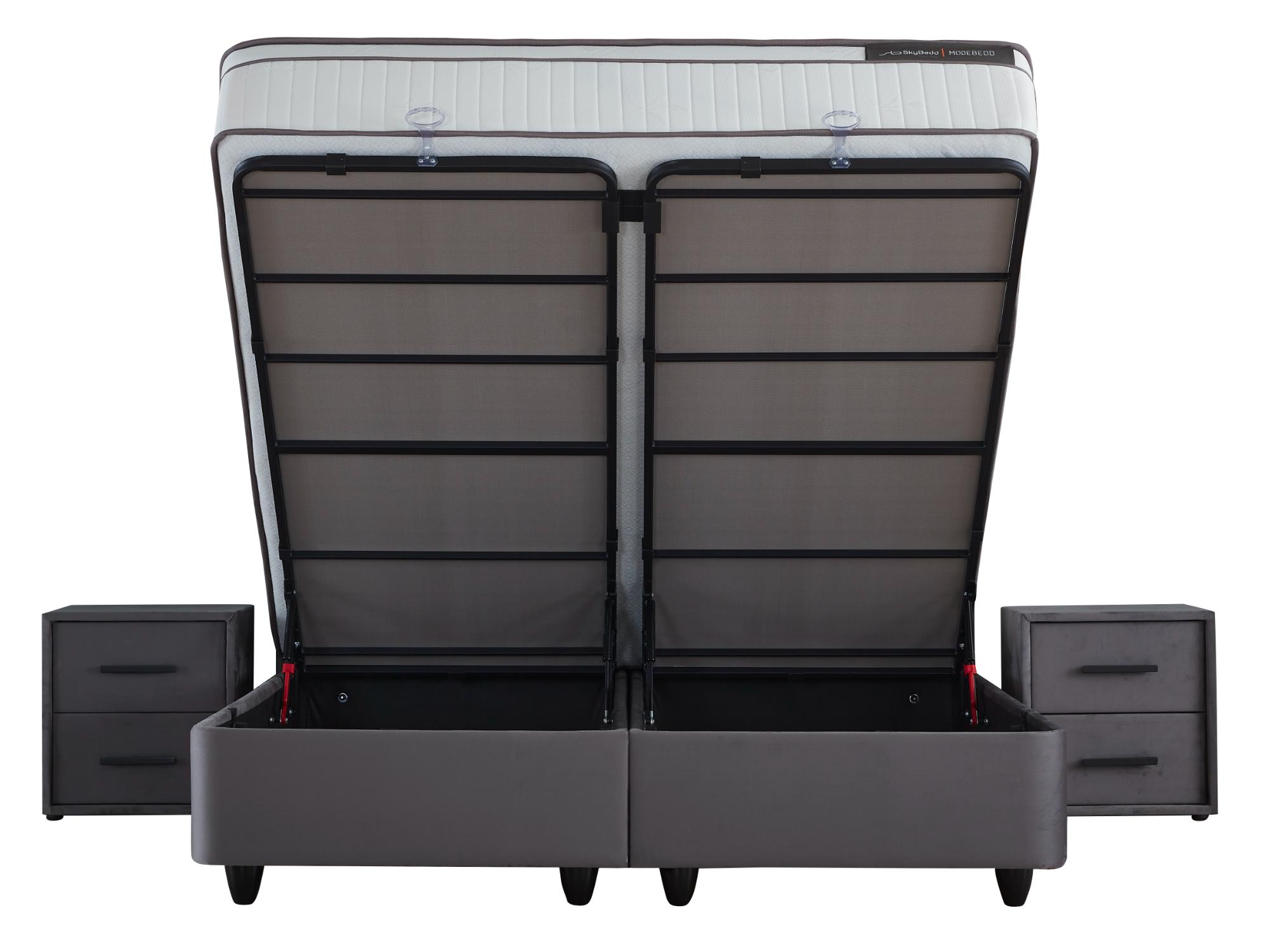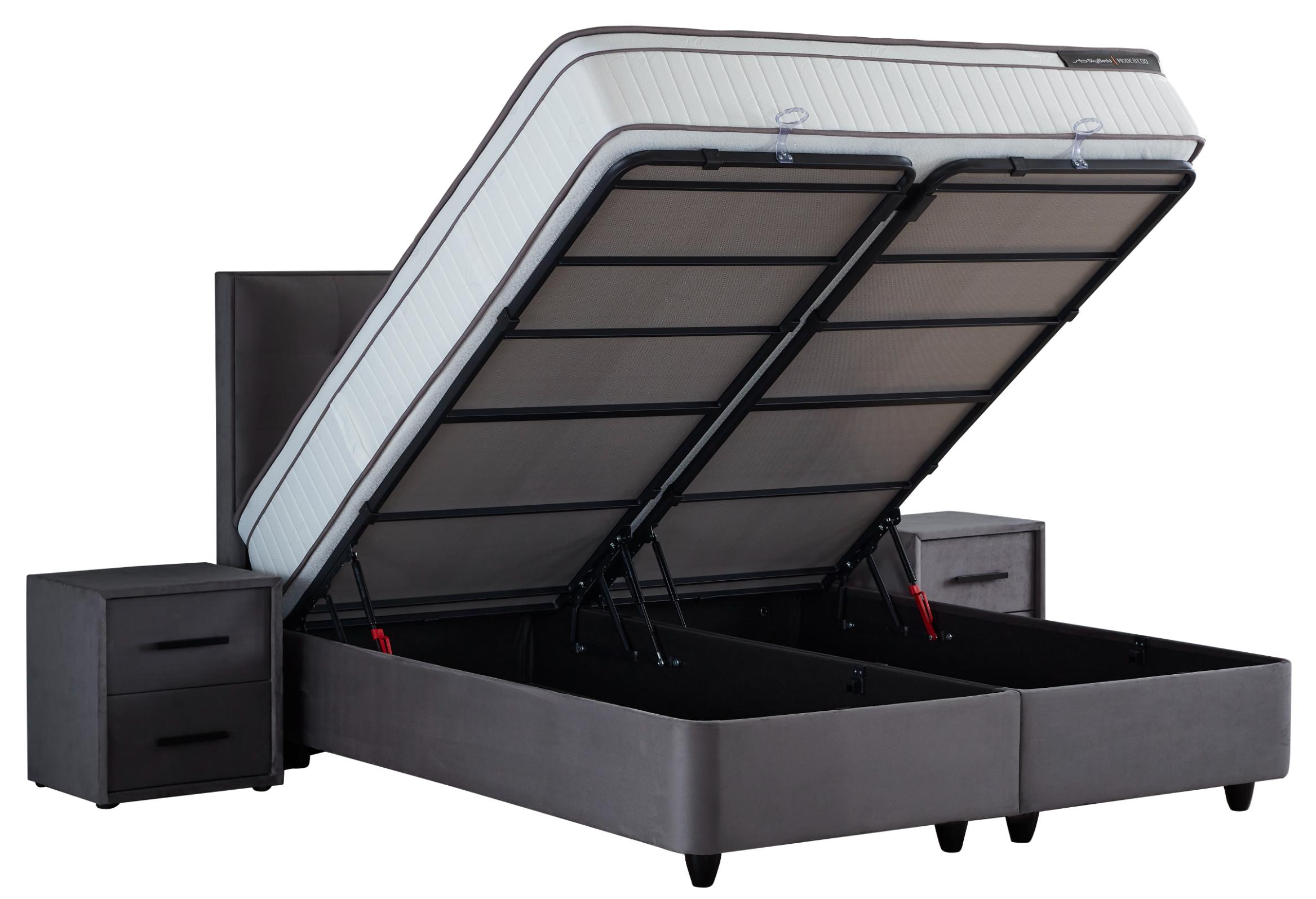 ModeBedd Grau Set Boxspringbett / Stauraumbett Grau / Anthrazit mit Matratze und integriertem Stauraum