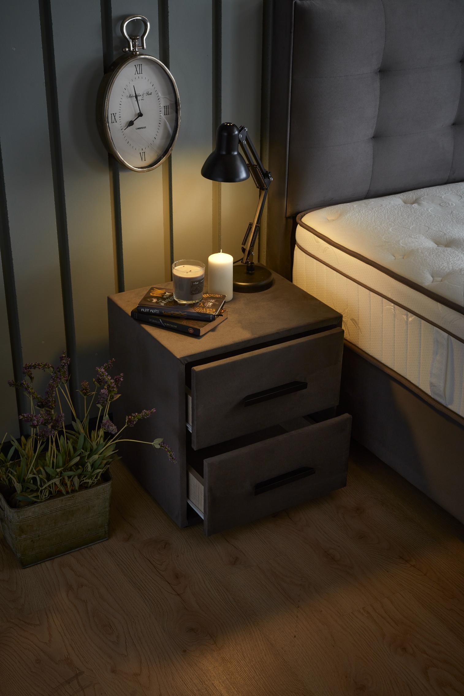 Startseite Stauraumbetten ModeBedd Grau Set Boxspringbett / Stauraumbett Grau / Anthrazit mit Matratze und integriertem Stauraum